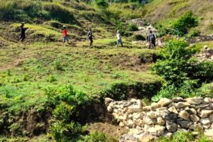 Pour freiner l’érosion et sécuriser l’accès à l’eau, le projet a combiné reboisement massif et travaux de conservation des sols, avec une forte mobilisation communautaire. Sur 16 hectares, 17 000 arbres ont été plantés par 1 230 volontaires, dont 800 orangers, 4 500 citronniers, 1 800 manguiers, 800 cacaoyers, 800 caramboliers, 800 avocatiers, 800 pamplemoussiers et 6 700 essences forestières et mellifères. En complément, 1 500 mètres de murs en pierres sèches ont été construits par 100 travailleurs rémunérés pour stabiliser les versants. Parallèlement, six points d’eau critiques ont été réhabilités à Grande Place, Bas Teno, Haut Teno, Calebassier, Bourdeau et Marécage, en coordination avec la DINEPA-OREPA et des comités locaux de l’eau composés d’hommes et de femmes.